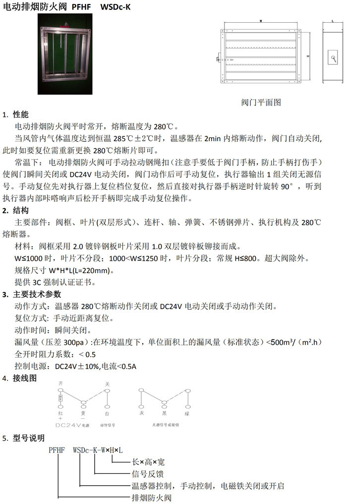 电动排烟防火阀PFHF WSDC-K